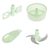 این محصول خرد کن ، خشک کن و همزن هم است. بدنه پلاستیک و تیغه فلزی این خردکن شست و شوی این محصول را بسیار راحت کرده است. دارای دستگیره، دسته اهرم، تیغه، و همچنین سبد خشک کن سبزی نیز هست. دارای سه تیغه داسی شکل می باشد.