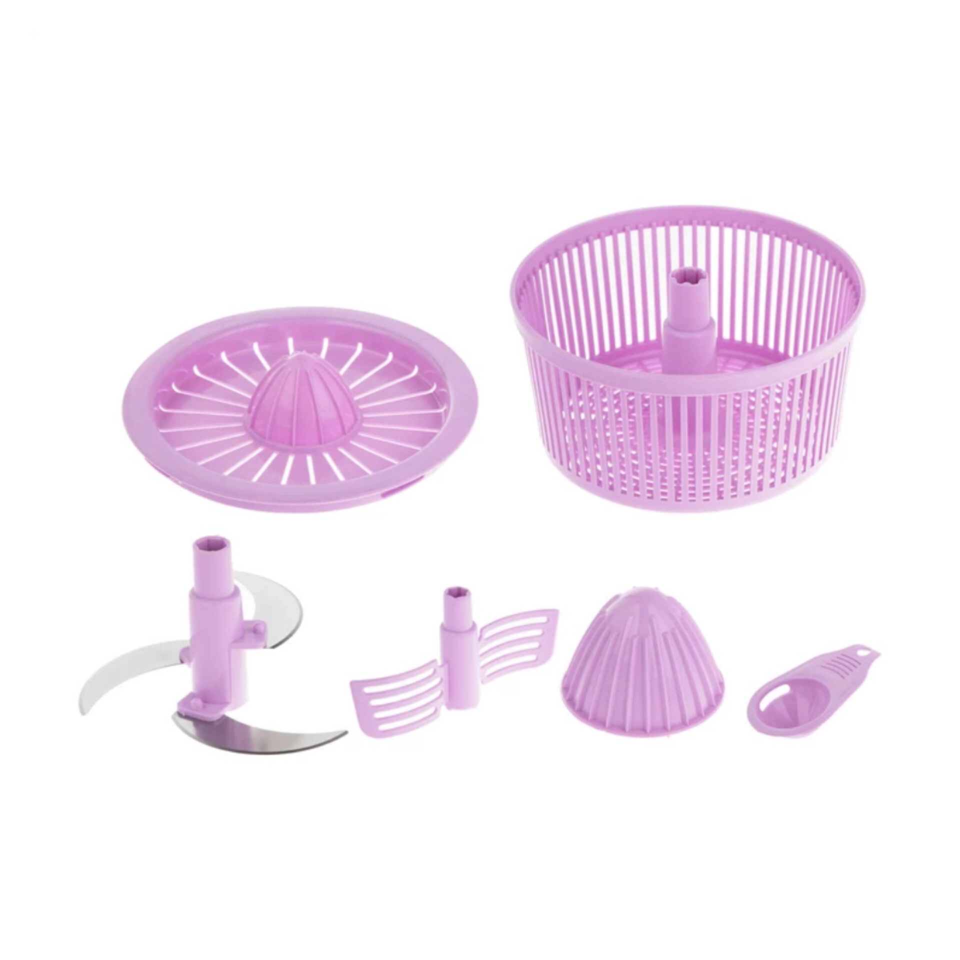 این محصول خرد کن ، خشک کن و همزن هم است. بدنه پلاستیک و تیغه فلزی این خردکن شست و شوی این محصول را بسیار راحت کرده است. دارای دستگیره، دسته اهرم، تیغه، و همچنین سبد جداکننده زرده تخم مرغ نیز هست. دارای سه تیغه داسی شکل می باشد. دارای آبمیوه گیر