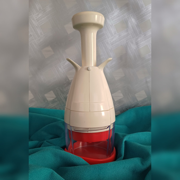این خرد کن مجهز به تیغه های فلزی استیل ضد زنگ است که به راحتی با سرعت بالایی پیاز، سبزیجات، خیار، گوجه و ... را خرد و ریز می کند. در کمتر از 1 دقیقه سالاد شیرازی درست کنید و بدون سوزش چشم و بو گرفتن دست ها پیاز و سیر را خرد کنید.