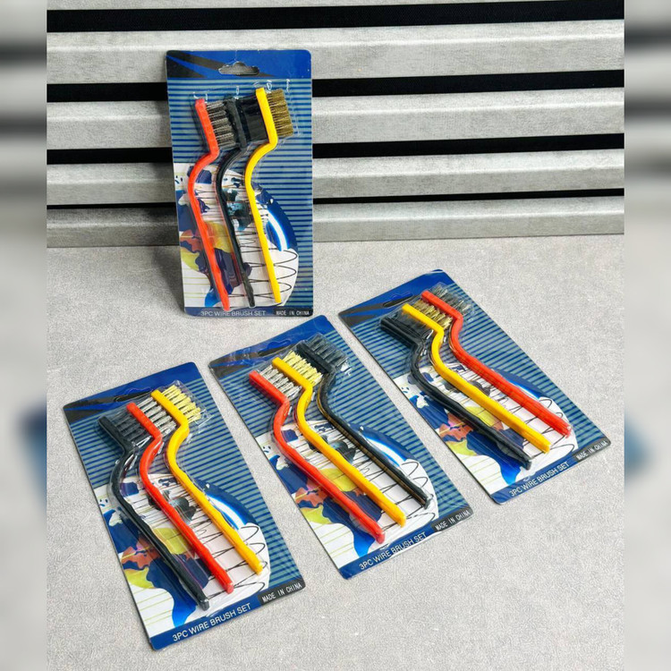 یک عدد فرچه پلاستیکی، یک عدد برنجی و دیگری فلزی را در یک مجموعه دارید که برای تمیزکاری انواع لکه های سمج و روغن و زنگ زدگی کاربرد دارد.