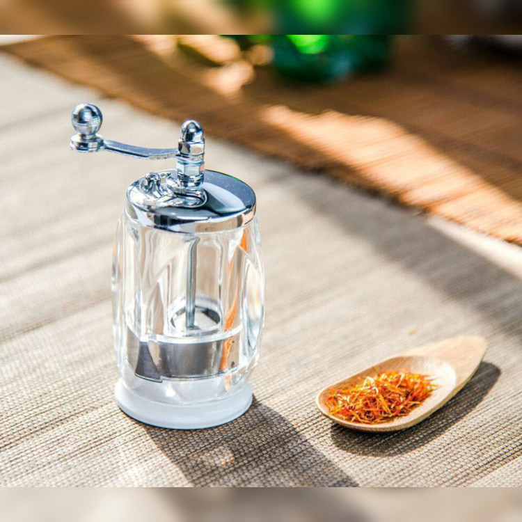 دارای بدنه آکرولیک بسیار با کیفیت و مقاوم در مقابل خش بوده و تیغه این محصول فولادی می باشد و مجهز به درپوش جهت جلوگیری از ریزش زعفران سائیده شده می باشد.