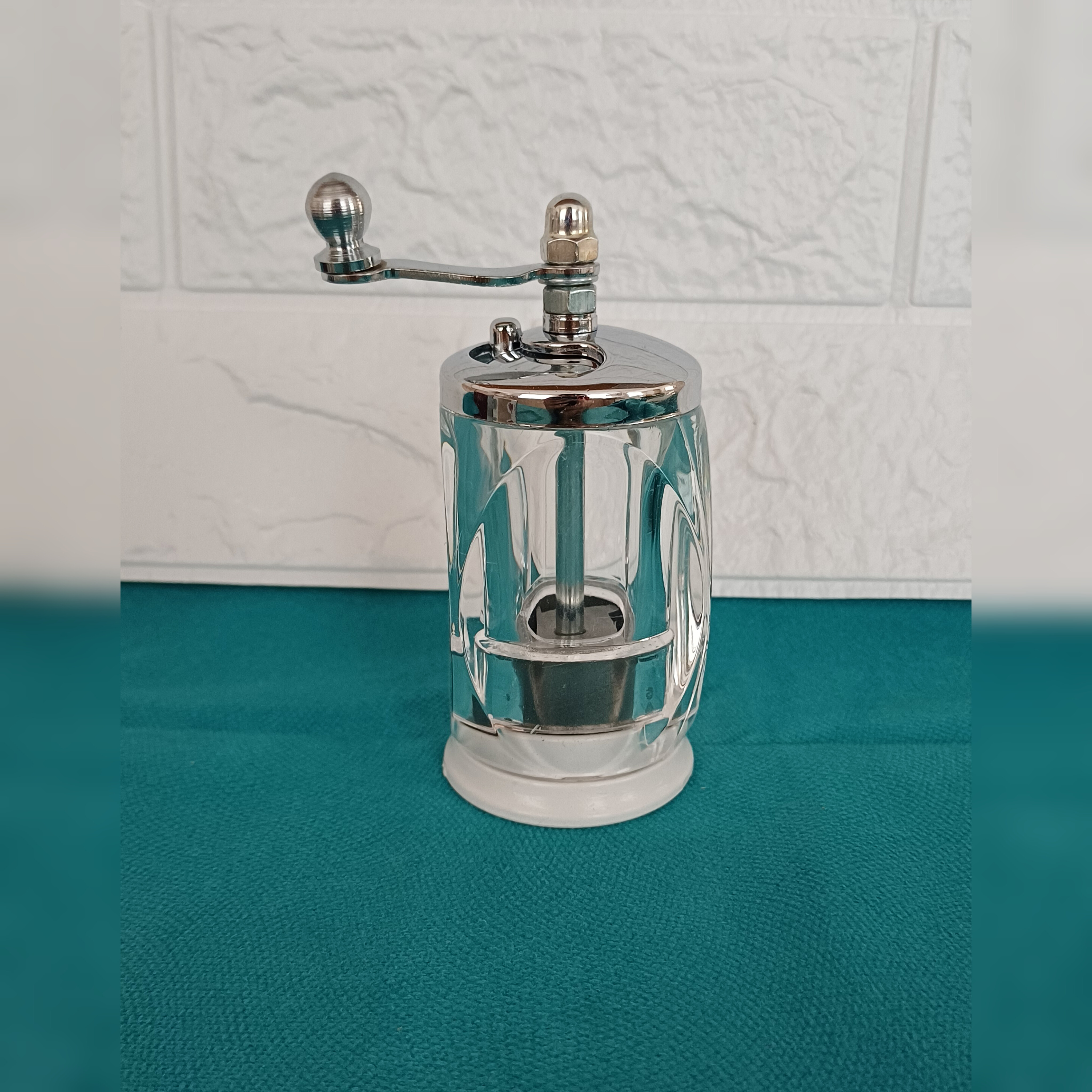 دارای بدنه آکرولیک بسیار با کیفیت و مقاوم در مقابل خش بوده و تیغه این محصول فولادی می باشد و مجهز به درپوش جهت جلوگیری از ریزش زعفران سائیده شده می باشد.